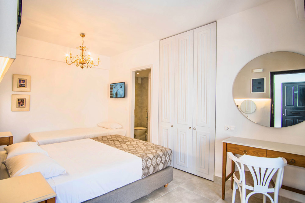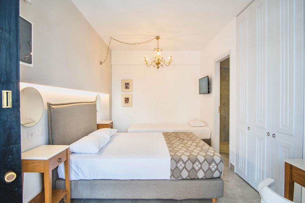 Nami Hotel Suites Double Superior Room bedroom with a single bed and a double bed